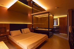 Destaques: hidromassagem, cama king size, Smart TV 50″, frigobar completo, garagem privativa, sistema de automação Autoave e decoração temática, perfeito para criar o clima ideal a dois.